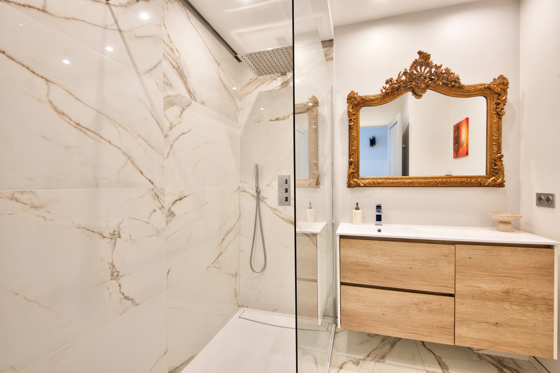 Deux autres chambres lumineuses, une salle de bains, une salle de douche avec balcon, complètent cet espace de vie élégant et fonctionnel.