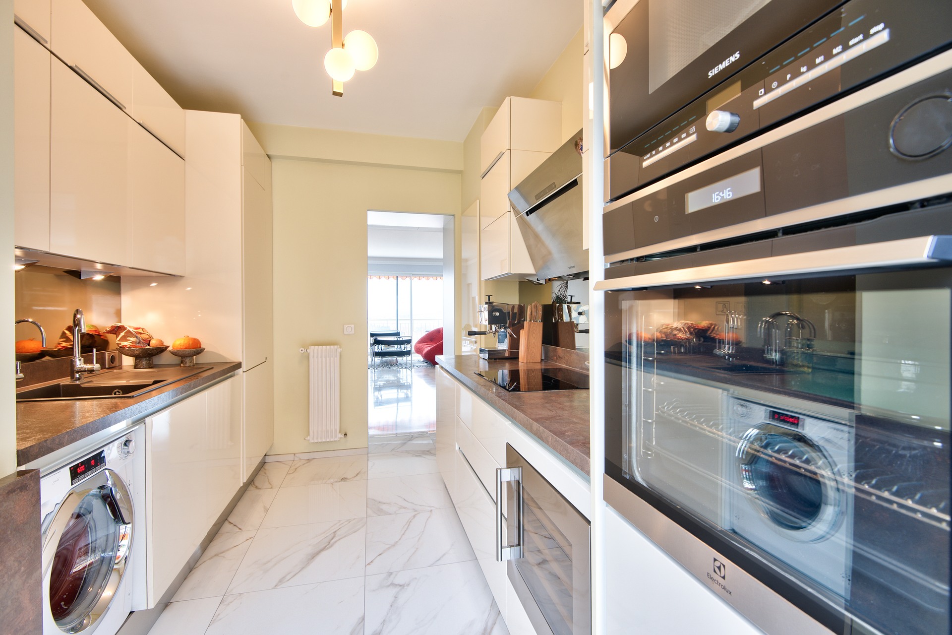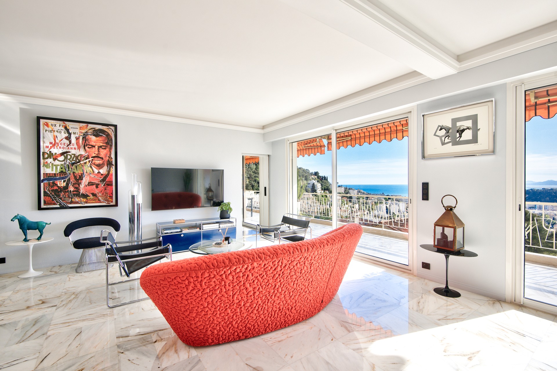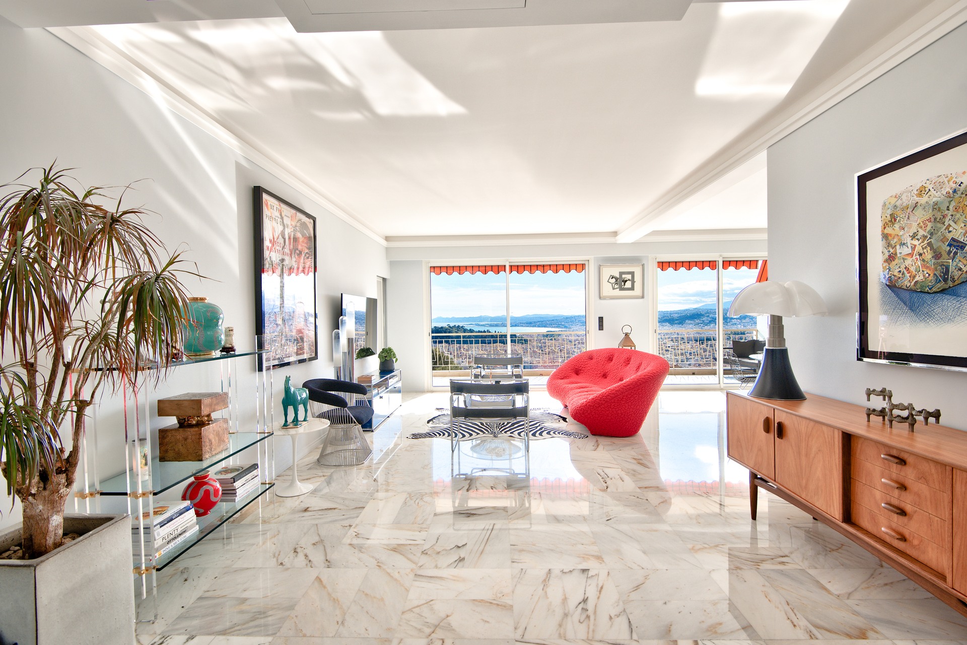 L’appartement offre un vaste séjour salle à manger de 48 m² avec cuisine entièrement équipée, une suite parentale de 32 m² avec salle de douche et dressing ouvrant sur une grande terrasse de 33 m² offrant une vue panoramique à couper le souffle sur la mer et les collines.