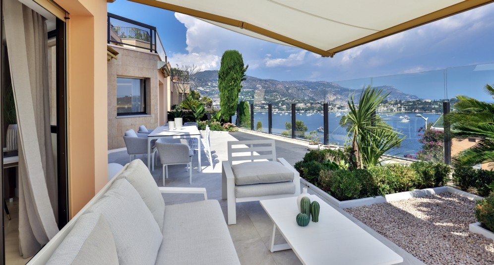 Superbe appartement-villa de 4 pièces de 172 m² avec une grande terrasse et un jardin privatif d’environ 230 m² bénéficiant d’une très belle vue mer sur le Cap Ferrat. Vous ne pourrez qu’être séduits par cet appartement luxueusement rénové, le luxe, la paix et la volupté qui se dégagent de cette résidence fermée avec gardien, agrémentée d’un beau parc et d’une magnifique piscine . L’appartement ayant son entrée indépendante et un accès direct à la piscine de la résidence vous donnera l’impression d’être dans une villa. L’appartement est composé d’un hall. d’un grand séjour très lumineux avec cuisine ouverte de 62 m², d’une chambre avec salle de bains, wc et dressing, de deux autres chambres avec salles d’eau et wc, d’un wc indépendant, d’une grande terrasse et de la jouissance exclusive d’un jardin. Un garage pour 2 voitures et une cave viennent compléter ce bien d’exception. Proche des commerces et des plages. Frais d’agence à la charge du vendeur. Pas de procédure en cours. Charges mensuelles 766 €. Les risques aux quels ce bien est exposé : georisques.gouv.fr Pour les visites , contacter ARMI HELENA au 06.62.46.35.83 ou FRANCK au 06.38.63.15.38.