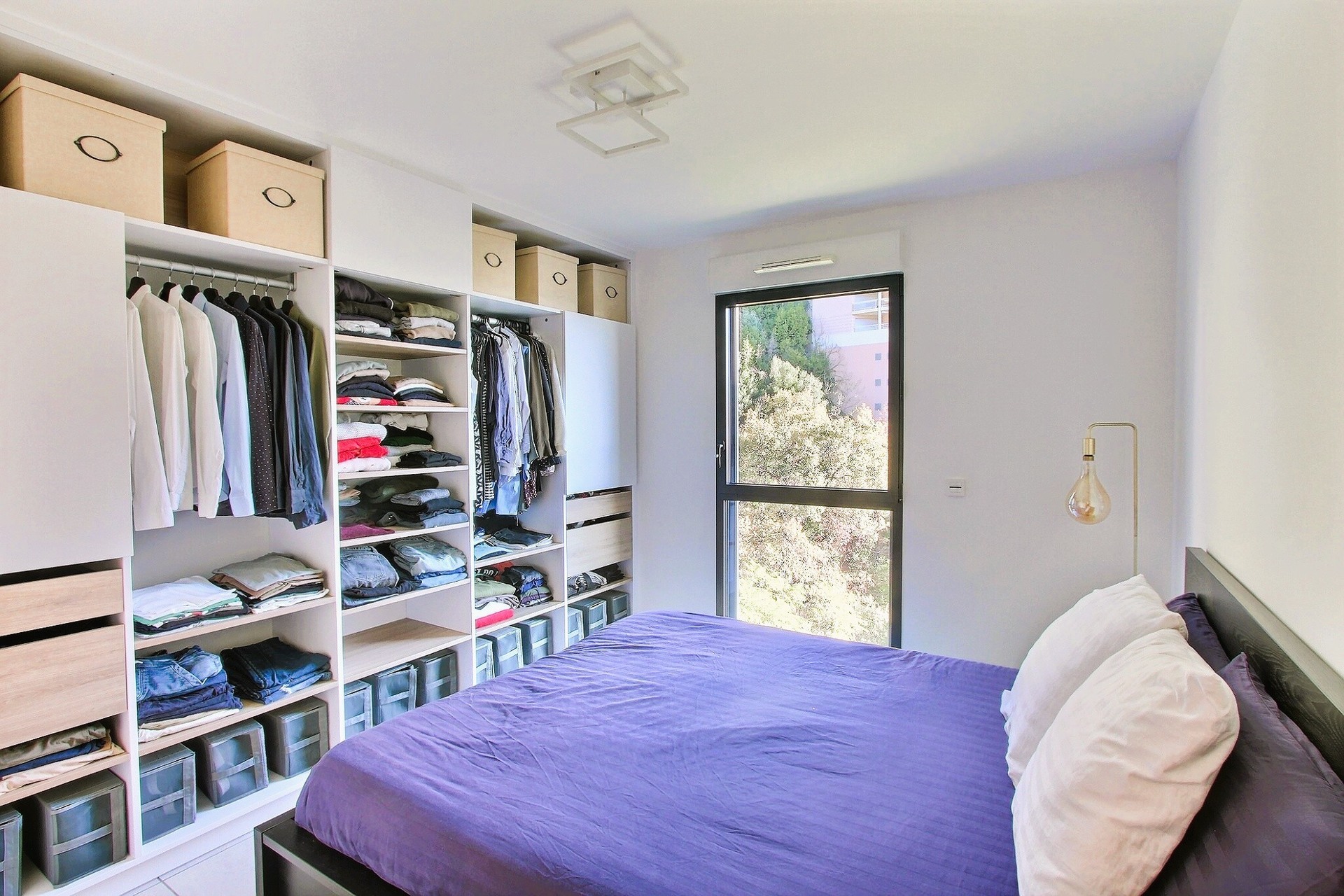 The apartment comprises an entrance, a bright living room with open, full equipped kitchen, two comfortable bedrooms, a modern bathroom with double sinks and a separate toilet.
