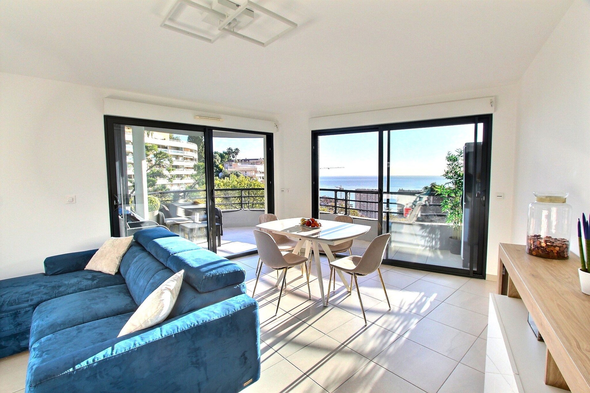 Enjoy a 13 m² terrace, fully sun-exposed, offering a beautiful view of the sea and the Principality .